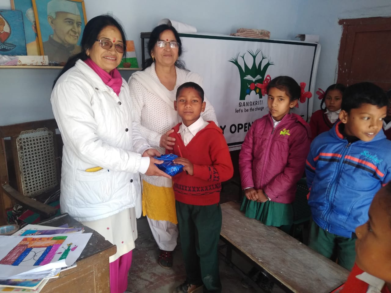 The third library we opened on New Year’s Eve is for Laxman Shishu Mandir, a primary school in Deval. The students were excited to receive the books. For opening the libraries we would like to thank Mrs. Malti Negi, Ms. Kirti Negi and other volunteers.